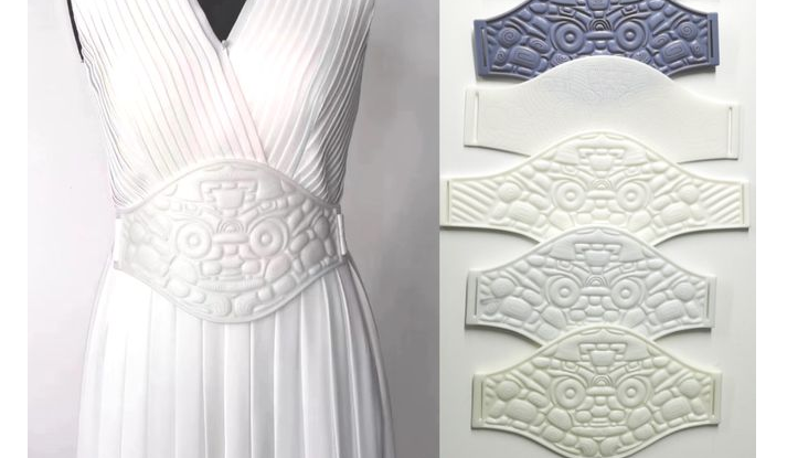 首先,她們在全國各地尋找不同的材料進(jìn)行試樣,但分別出現(xiàn)了系在腰上太厚沒有美感,或太薄容易斷,或太硬無法彎曲,或太軟豎不起來等問題。為此,設(shè)計團(tuán)隊試驗打印了數(shù)十塊腰封,掌握了材料與技術(shù)的巧妙融合,才得到最佳版本。